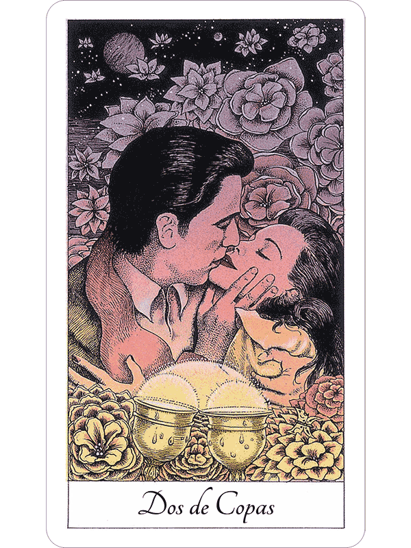 The deck’s archetypes welcome the spiritual seeker as old and cherished friends, their iconic faces already embedded in our culture, and in our minds. German artist Norbert Lösche has drawn portraits of some of the world’s most loved actors and actresses presenting the Tarot archetypes. His pen and ink drawings of Hollywood’s golden age are very beautiful, his imaginative use of color in the deck is utterly sublime, and his choices in “casting” are the best of all. Fans of classic films will recognize not just favorite stars, but appropriate scenes from the silver screen.