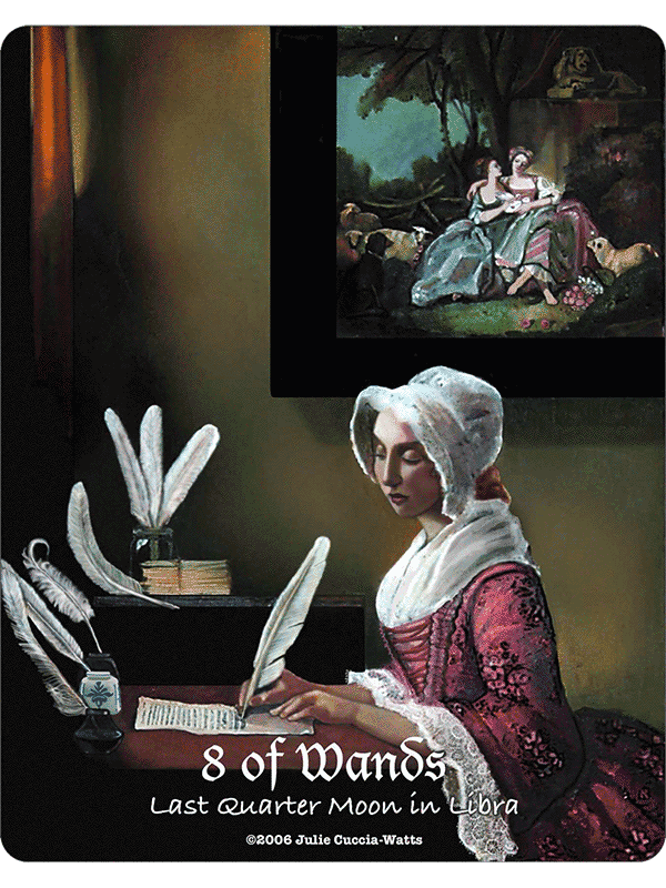 In MAAT, Julie re-imagines classic art as well as creating her own archetypal scenes. There are glimpses of favorite paintings in new contexts, and episodes from ancient history in MAAT. Fascinating myths and tidbits of historical knowledge enrich the guidebook that accompanies the cards. Drawing on symbolism from global human culture throughout time, MAAT Tarot’s superb art is the thread that binds this lovely deck together.