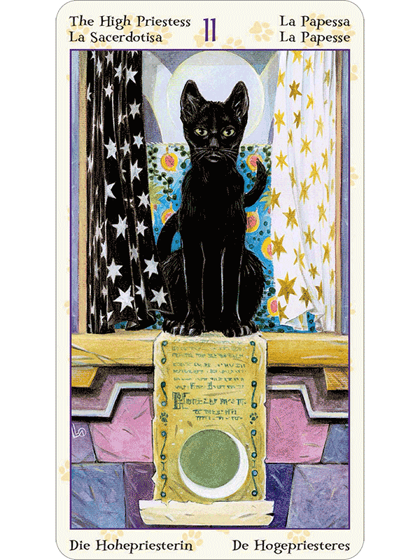 Here you will find realistic cats taking the parts of human characters in the classic 1910 RWS scenes. Symbolic elements drawn from Christianity have been replaced with Pagan symbols. This deck is purrrfect for light-hearted readings, but like those with nine lives, Tarot of Pagan Cats has great depth of character. With these cards, cats claim their rightful place in Tarot, one of the primary divinatory tools for Pagans, Witches, and Wiccans around the world.