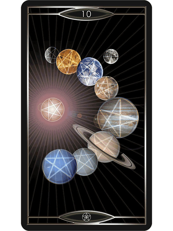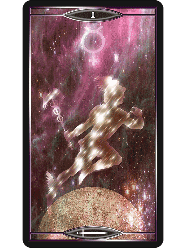 Coupling the Tarot archetypes with ideas from quantum physics and the theory of relativity, the genius of Quantum Tarot is in the subtlety of the pairings. For mystics enchanted with mathematics as a universal language, this deck is a brilliant work. The Major Arcana matches each card with an appropriate aspect of theoretical physics. The Minor Arcana examines the phenomena the theories describe, such as supernovas, black holes, neutron stars, antimatter. The Court Cards comprise familiar mythic archetypes drawn from observation of the planets and constellations in the night sky.