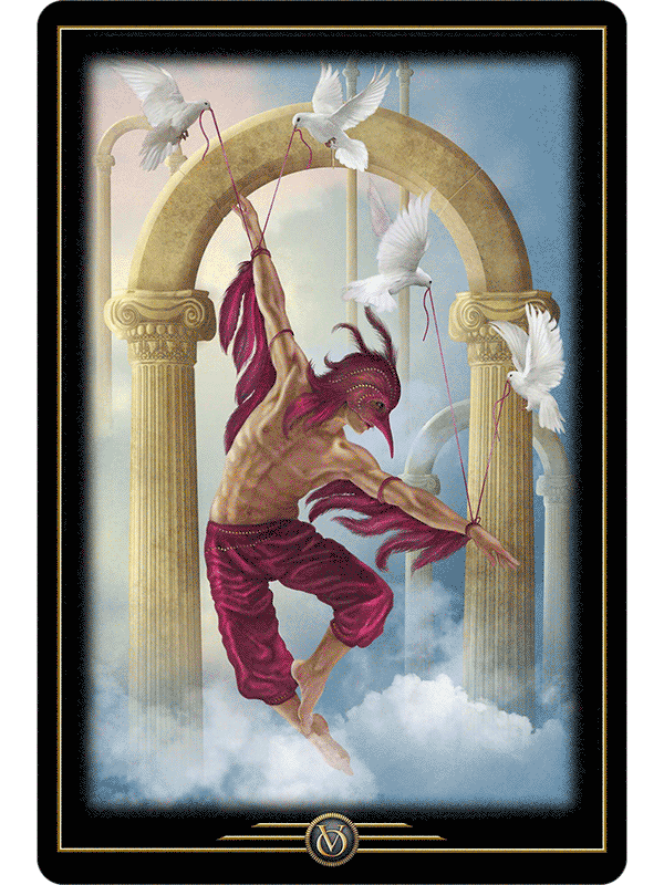 The cards fall into four loose categories, Situations, Emotions, Actions, and Behavior. Oracle of Visions is designed to expand our accustomed frames of reference, to help us explore our self-imposed limitations, and step away from our automatic assumptions. These changes in viewpoint can bring breakthroughs in understanding, and help us identify what we bring to challenging situations in our lives. By seeing ourselves and the roles we play in a new light, we can improve the day to day choices we make, and manifest long term positive changes in our lives.