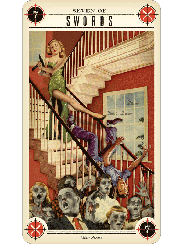 Should you stay in your fallout shelter until the last of your supplies are depleted? Flee to one of the government-sponsored refugee camps? Proceed directly to the Gunz-R-Us? Consult the Zombie Tarot to determine the best course of action!